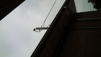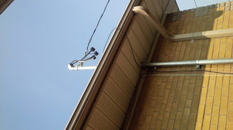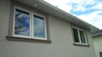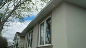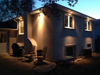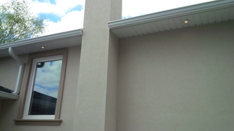 New soffit pot lights located on the side of a freshly updated house.