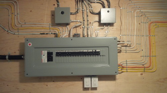 Close-up of inside panel wiring